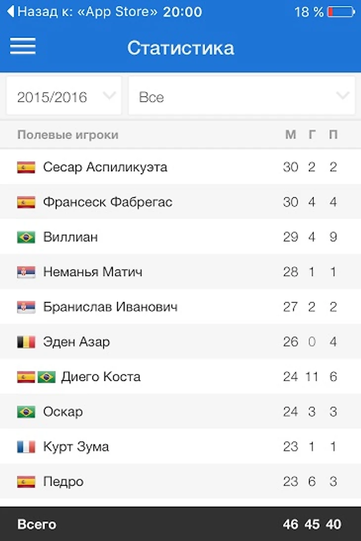 – Полная статистика всех матчей в режиме реального времени, а также статистика спортсменов;