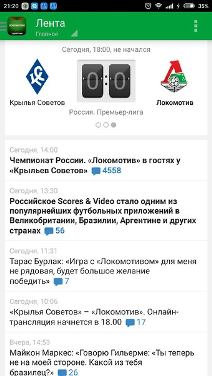 В заключительном матче 23-го тура чемпионата России на стадионе «Металлург» в Самаре «Локомотив» играет на выезде с «Крыльями Советов». Следить за результатами команд удобнее всего с помощью клубных приложений от Sports.ru.