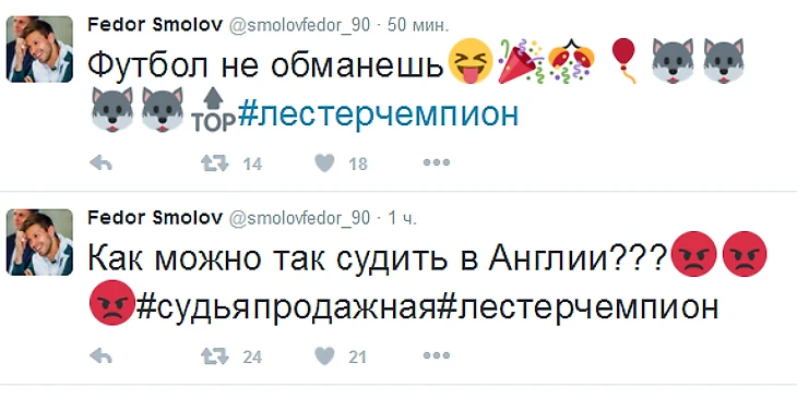 «Как можно так судить в Англии? Футбол не обманешь. «Лестер» – чемпион», – написал игрок в твиттере.