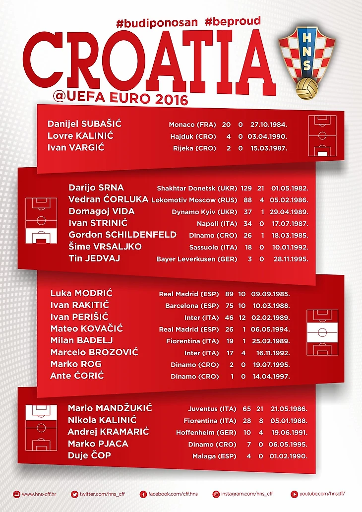 На групповом этапе Евро сборной Хорватии предстоит сыграть с командами Турции, Чехии и Испании.