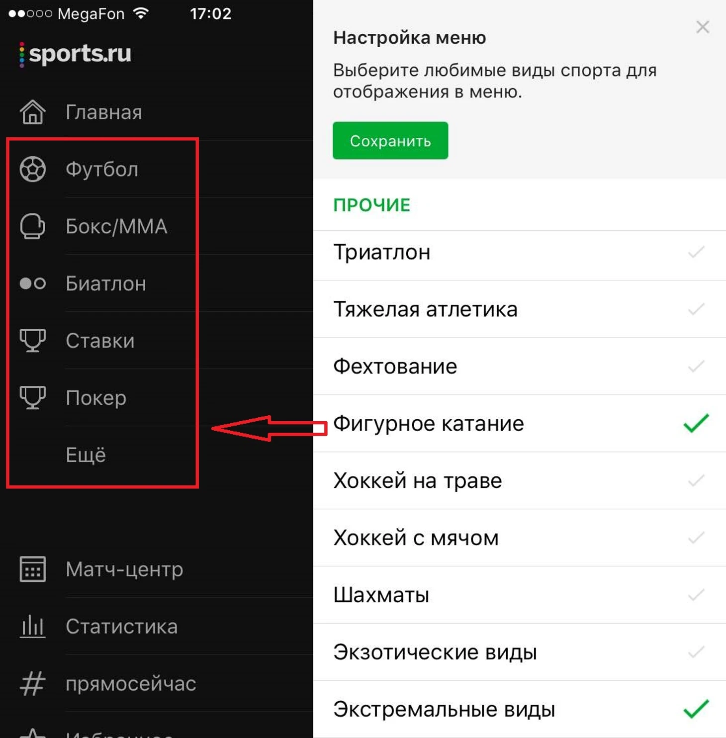 Кастомное меню в главном приложении Sports.ru: читайте только о тех видах спорта, которые вам интересны