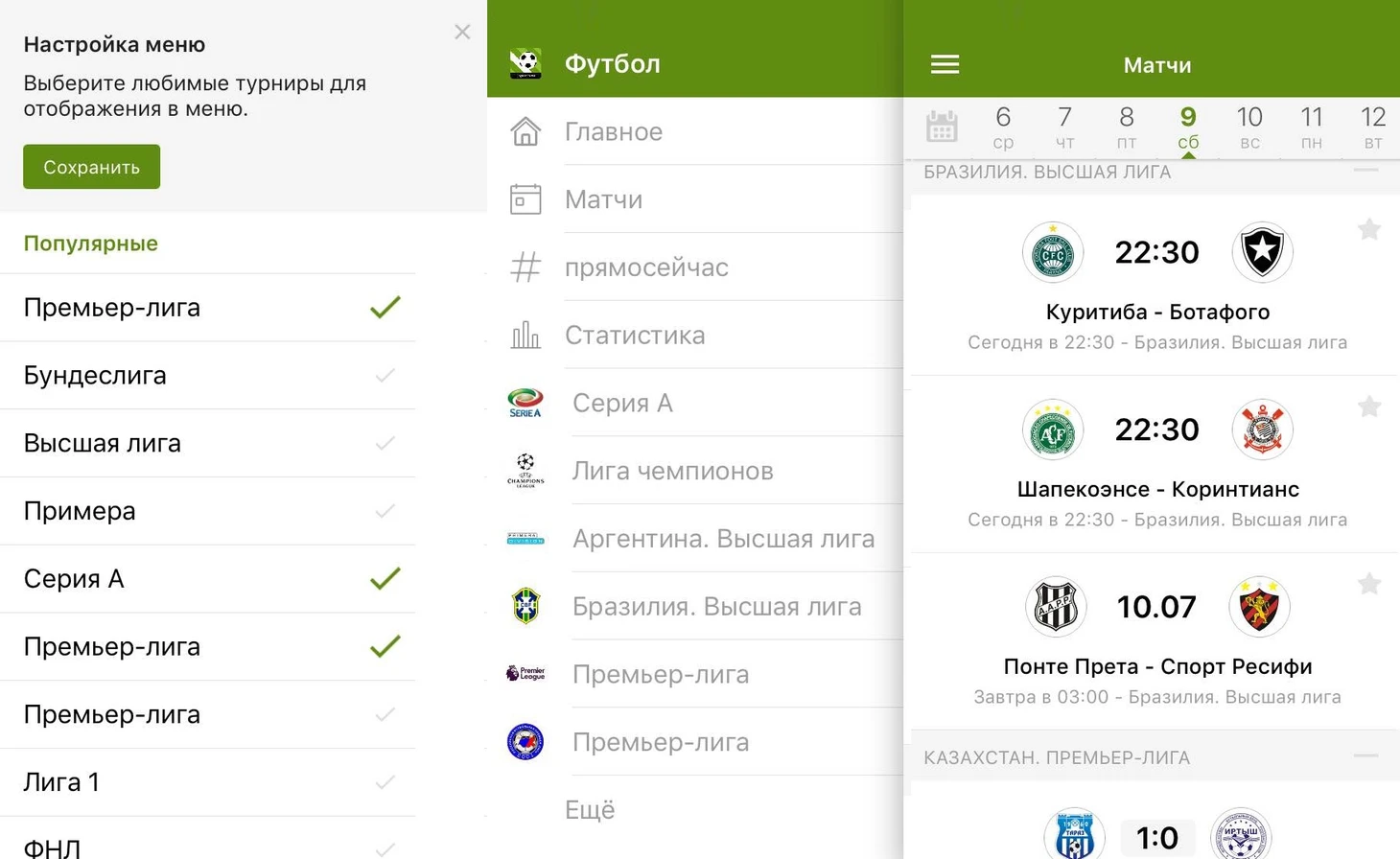 Чисто футбольное мобильное приложение (без Олимпиады!) с настраиваемым меню – на iOS и Android