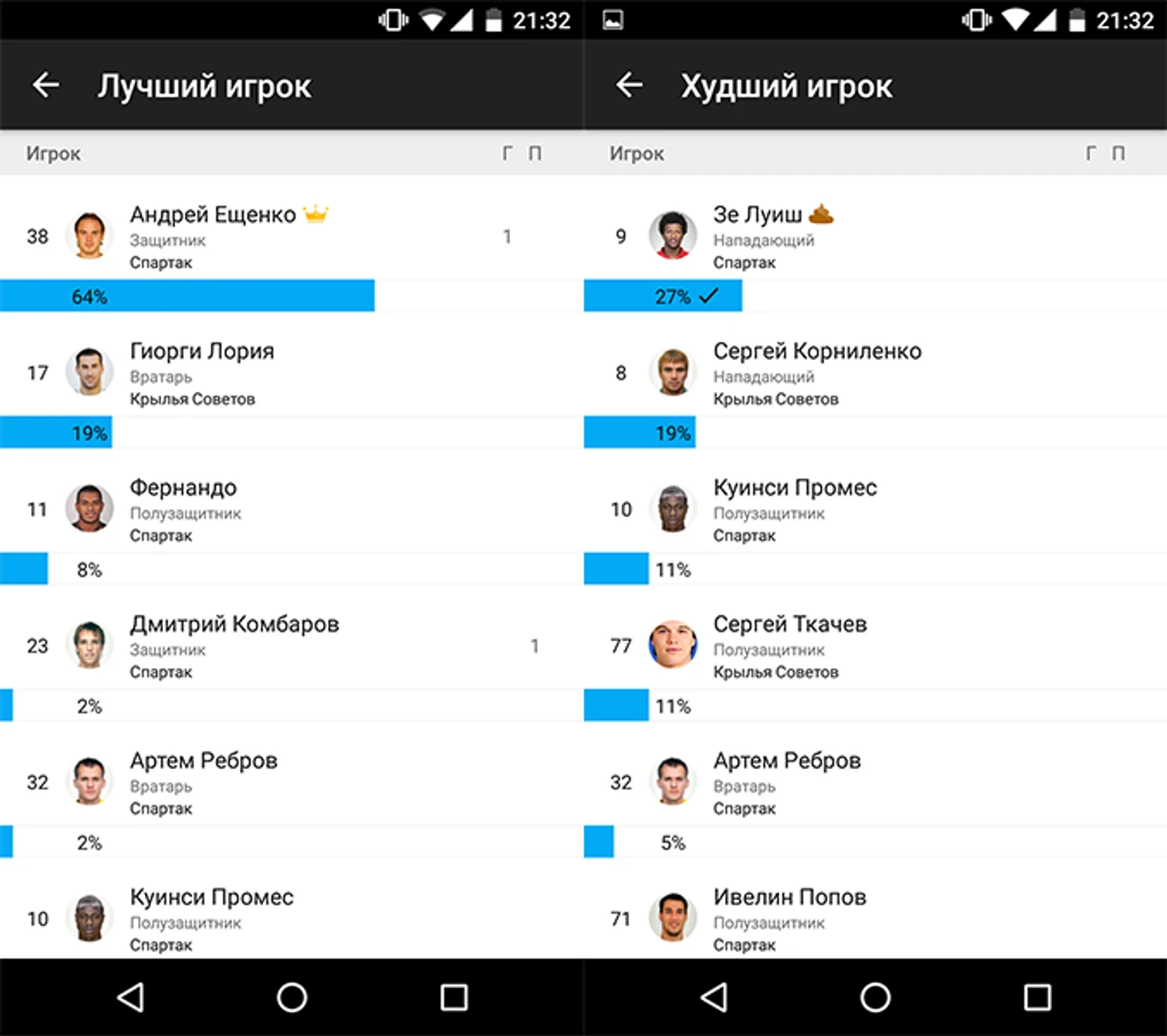 Смолов и Мамаев лидируют в голосовании болельщиков после матча «Краснодар» – «Терек». Андрей Ещенко – лучший в матче «Спартак» – «Крылья Советов»