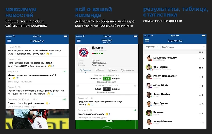 – Добавляйте любимый клуб в избранное и следите за его выступлением и новостями в отдельной вкладке;