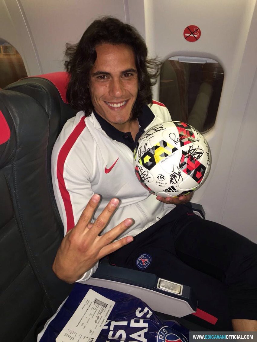 В память о покере игроки «ПСЖ» расписались на мяче и подарили его Кавани.