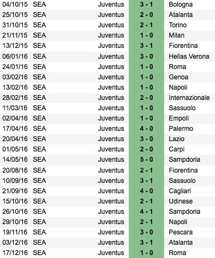 Эта победа стала 25-ой в домашних матчах «Ювентуса» в серии А. Таким образом, туринский клуб повторил свой рекорд 2013-14 годов.