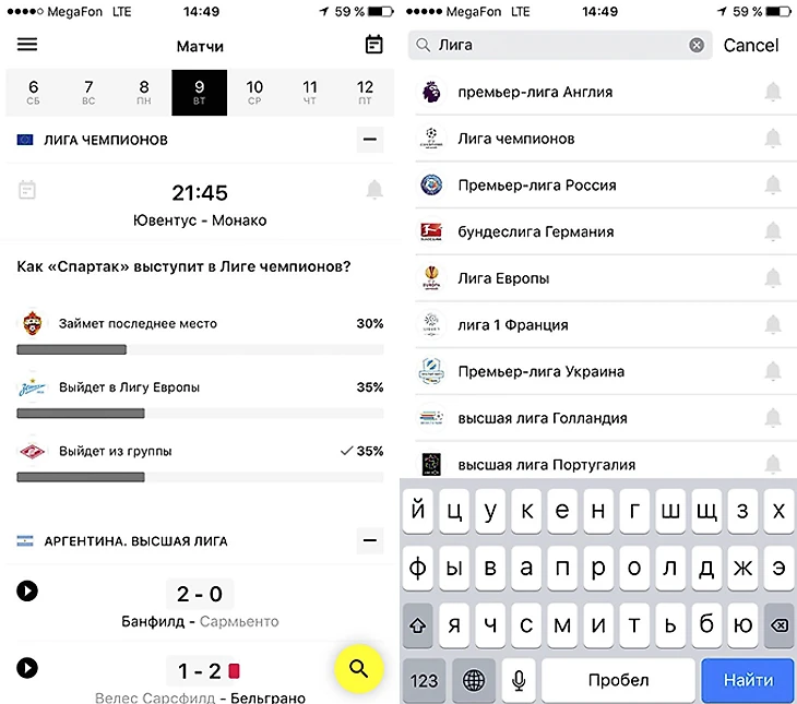 Новый поиск и обновленный дизайн в приложении Scores & Video: все результаты и видео в вашем смартфоне!