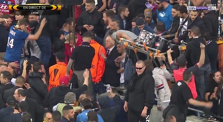 Президент «Лиона» Жан-Мишель Олас отправился в эпицентр столкновений между болельщиками перед началом матча 1/4 финала Лиги Европы против «Бешикташа».