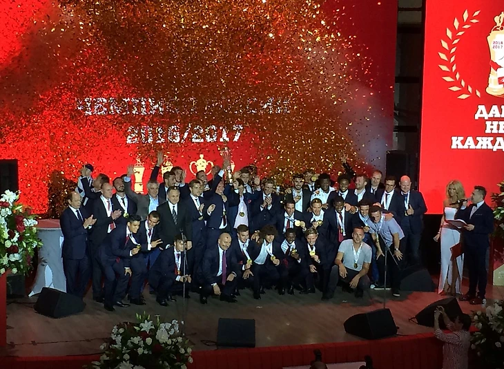 На Цветном бульваре в Москве состоялось награждение «Спартака» золотыми медалями за победу в чемпионате России-2016/17.