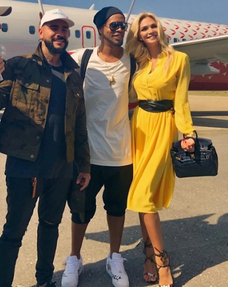 Роналдиньо прибыл в столицу Чеченской республики вместе с исполнителем Тимати и телеведущей Викторией Лопыревой.