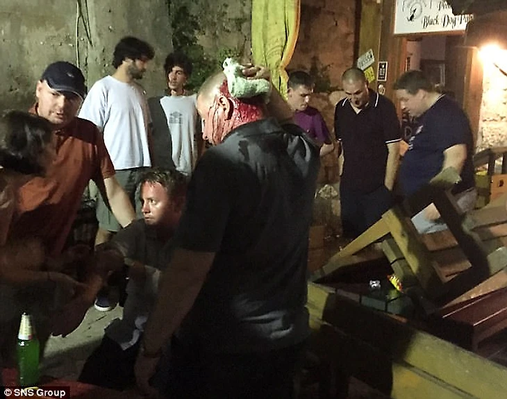 Инцидент произошел вечером во время прогулки группы из 50 шотландских фанатов по исторической части города.