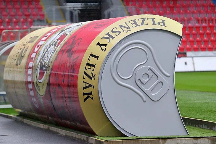 Клуб из Пльзеня оформил скамейку запасных на домашней «Доосан-Арене» в виде огромной пивной банки.