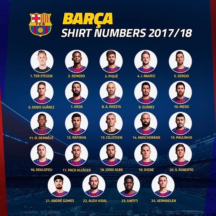 «Барселона» огласила заявку на сезон-2017/18, подтвердив игровые номера футболистов.