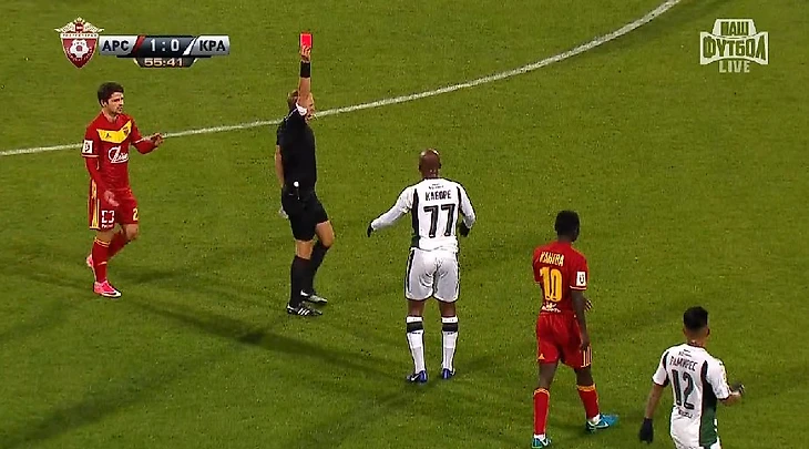 Полузащитник «Краснодара» Шарль Каборе был удален в матче премьер-лиги против тульского «Арсенала».