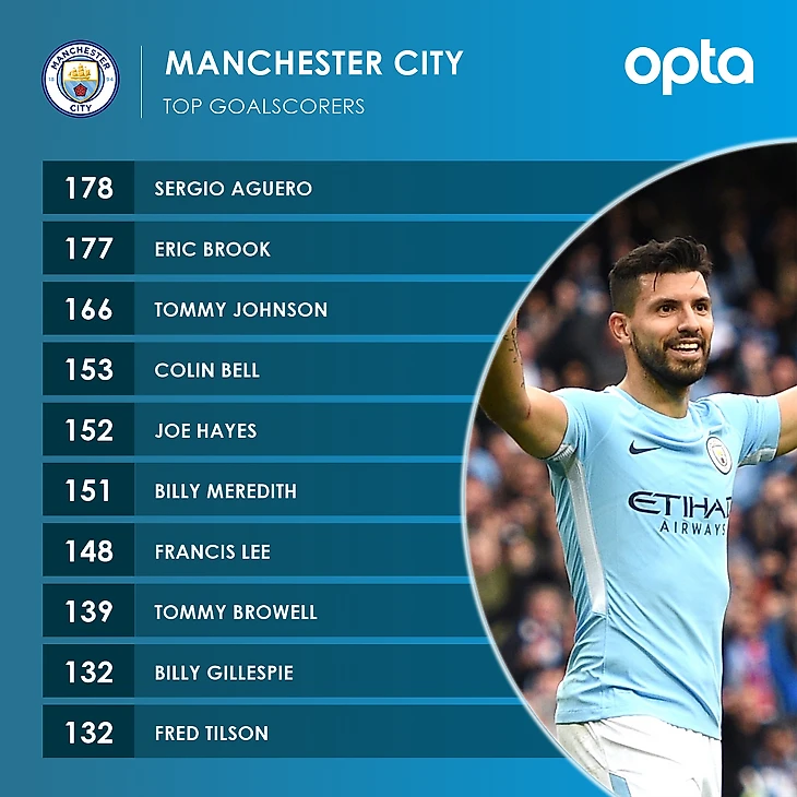Этот мяч стал 178-м для аргентинца в футболке «горожан». Агуэро обошел Эрики Брука (177) и стал лучшим бомбардиром в истории клуба.