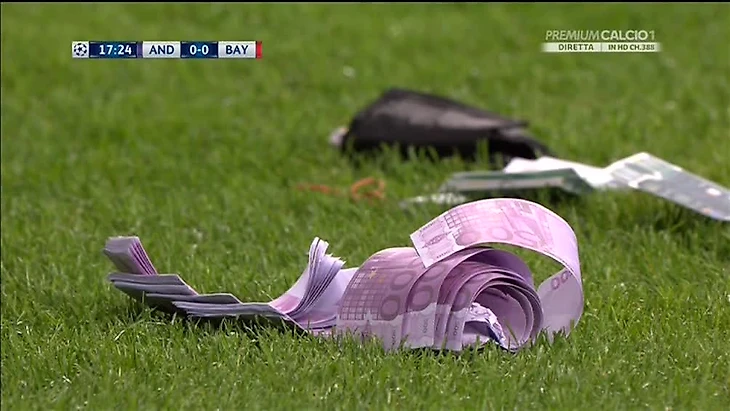 Болельщики «Баварии» забросали поле фальшивыми деньгами во время выездного матча группового этапа Лиги чемпионов против «Андерлехта».
