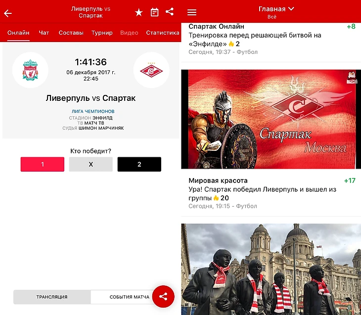 Будет ли «Спартак» в плей-офф ЛЧ? Следите за матчем против «Ливерпуля» в клубном приложении Sports.ru