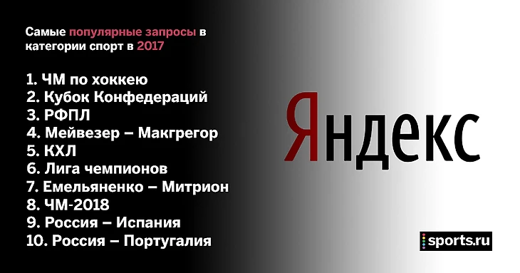 ЧМ по хоккею, Кубок конфедераций и РФПЛ – в топ-3 спортивных запросов Яндекса в 2017 году