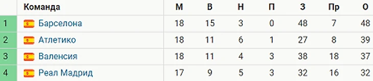 Ближайший преследовать «Барселоны» – «Атлетико». У «кольчонерос» 39 очков после 18 туров.