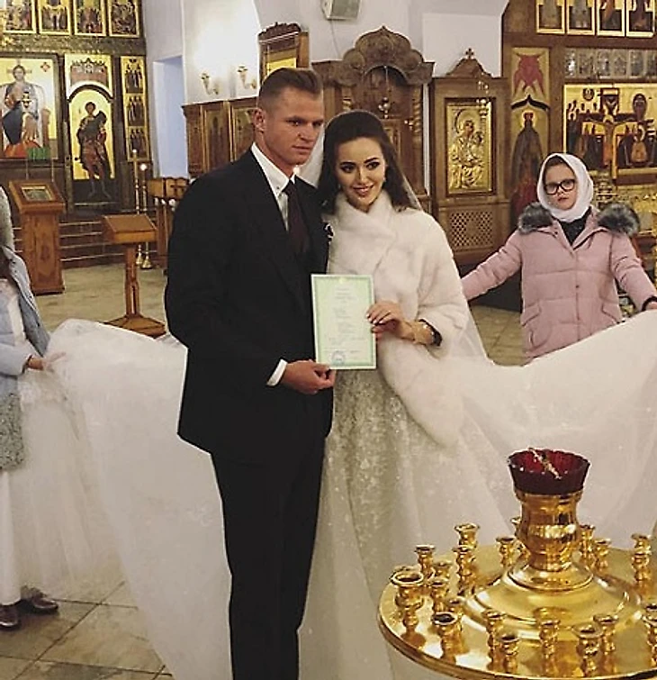 Хавбек «Локомотива» Дмитрий Тарасов обвенчался со своей супругой Анастасией.