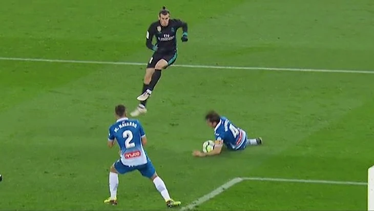 В ответной атаке мяч после удара Гарета Бэйла в штрафной «Эспаньола» попал в руку хавбеку Виктору Санчесу, но пенальти не был назначен.