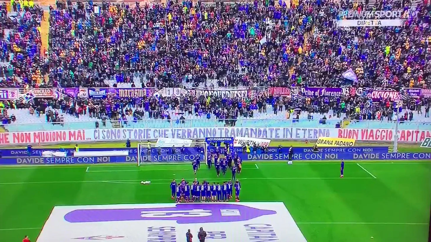 После минуты молчания, пока игроки держали большой баннер «Чао, Давиде», болельщики клуба из Флоренции выпустили в небо белые воздушные шарики, на которых были написаны слова к Астори.