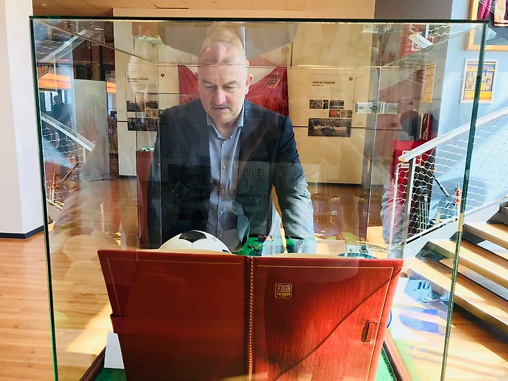 Черчесов прибыл в Дрезден на 65-летие «Динамо» и посетил выставку на стадионе
