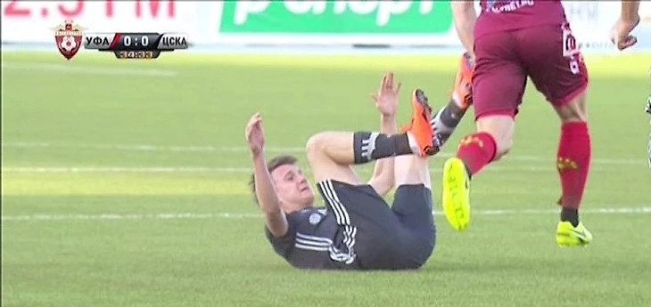 В первом тайме хавбек сборной России ударил шипами в бедро защитника «Уфы» Бояна Йокича и получил от судьи Евгения Турбина желтую карточку.