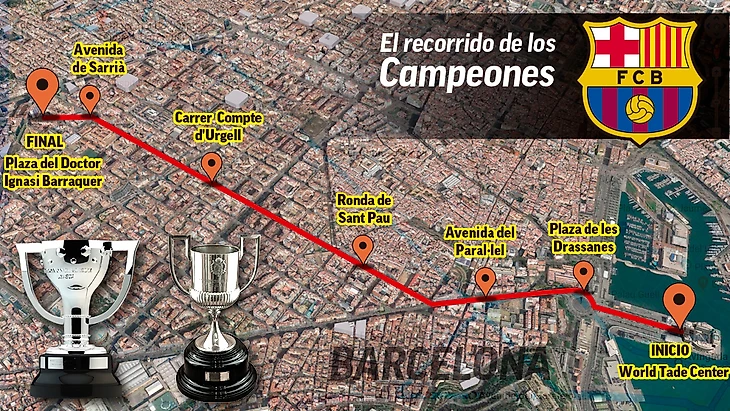 В 18.30 по местному времени команда на открытом автобусе выедет из бизнес-парка World Trade Center и проедет по улицам Барселоны.