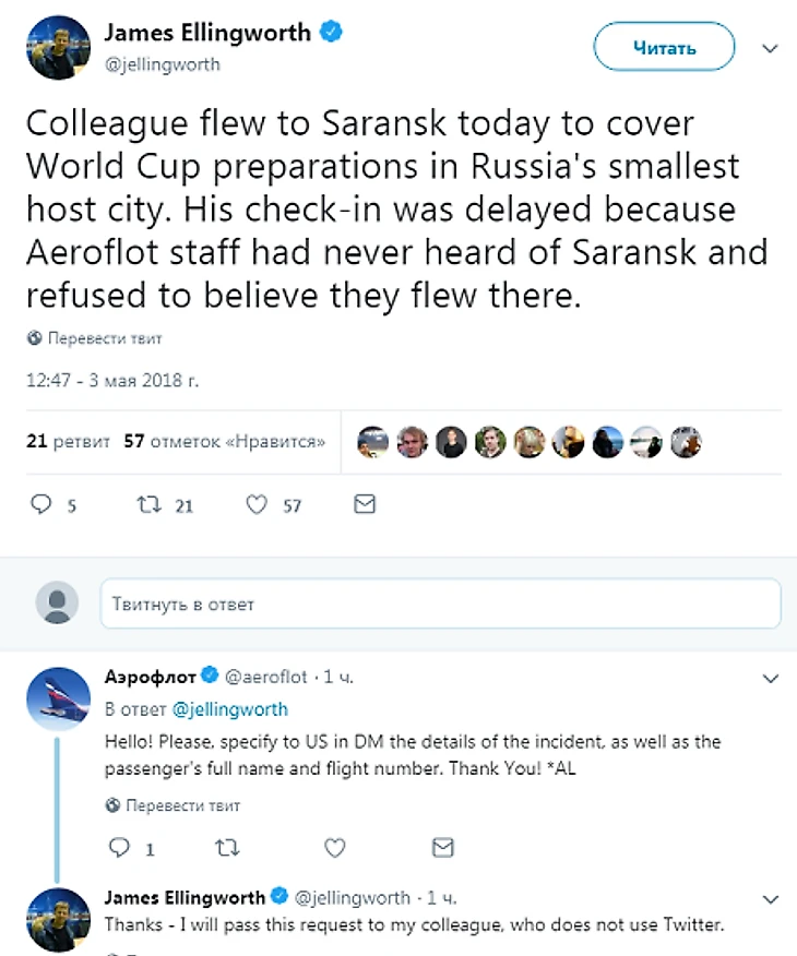 Журналист AP написал, что сотрудники «Аэрофлота» не слышали о Саранске. Оказалось, что он неправильно понял коллег