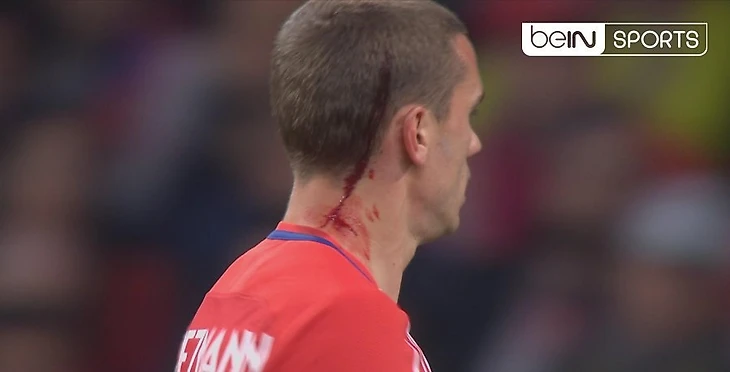 Несмотря на серьезное рассечение, Гризманн не обратился к врачам, а арбитр Джанлука Рокки не заметил крови и не остановил игру.