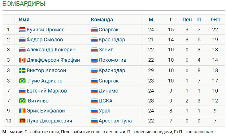 Этот гол стал для голландца 15-м в текущем сезоне РФПЛ. Он обошел в гонке бомбардиров форварда «Краснодара» Федора Смолова.
