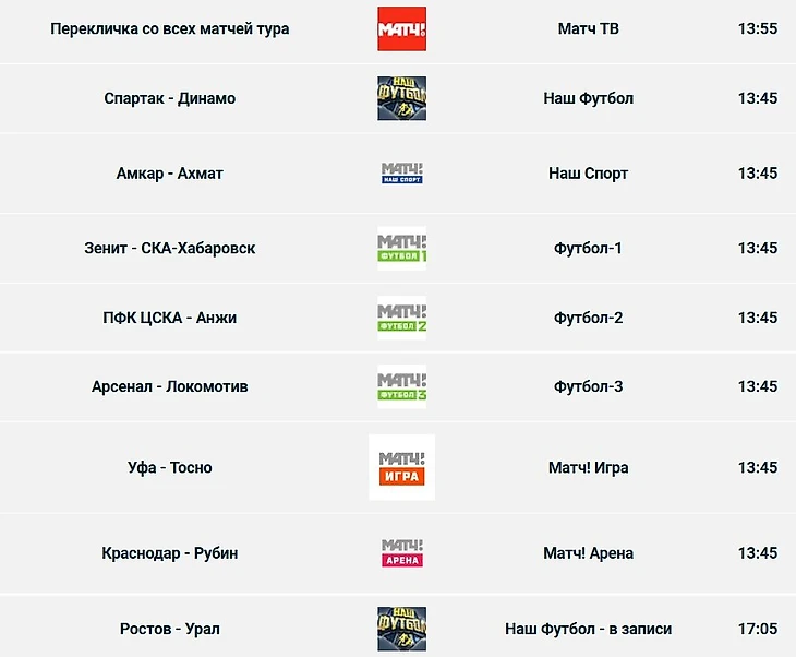 «Матч ТВ» покажет все игры 30-го тура в прямом эфире в режиме переклички
