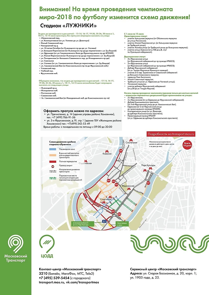 Ограничения и перекрытия движения коснутся участков, прилегающих к «Лужникам», «Открытие Арене», а также фан-зоне на Воробьевых горах.
