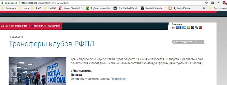 Официальный сайт РФПЛ по ошибке сообщил о переходе Манучаряна в «Локомотив»