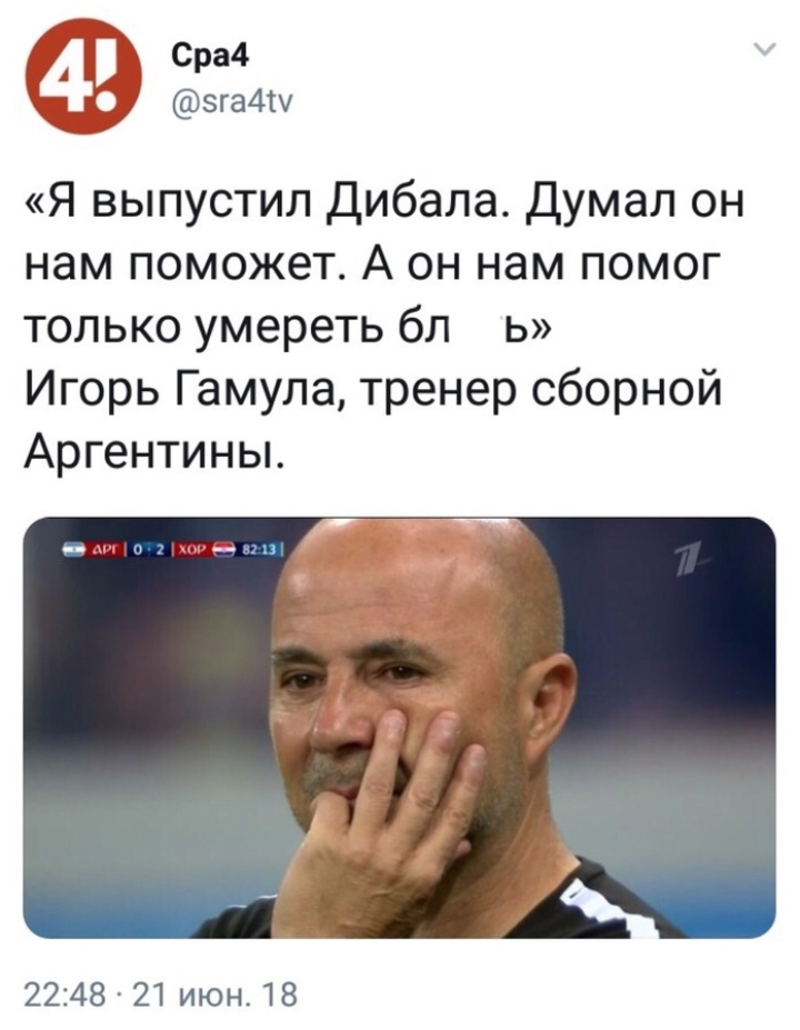 Главный тренер сборной Аргентины Хорхе Сампаоли прокомментировал поражение от Хорватии (0:3) на групповом этапе ЧМ-2018.