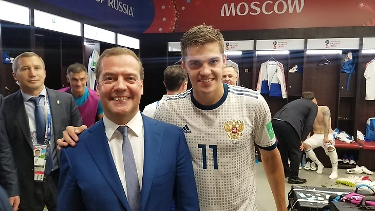 Премьер-министр России Дмитрий Медведев лично поздравил футболистов сборной России с победой над Испанией в матче 1/8 финала ЧМ-2018 (1:1, по пенальти – 4:3).