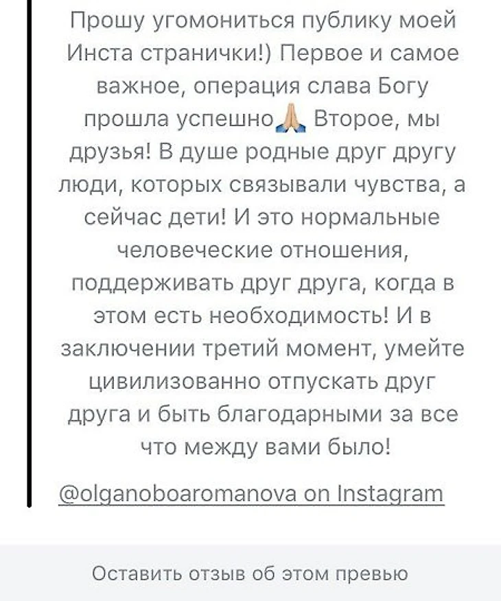 «Прошу угомониться публику моей Инста странички! Первое и самое важное, — операция, слава Богу, прошла успешно.
