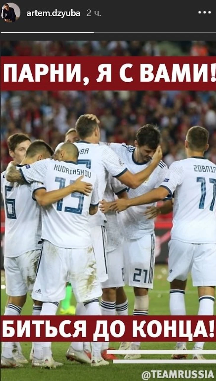 «Парни, я с вами! Биться до конца!», – написал игрок в сторис в инстаграме.