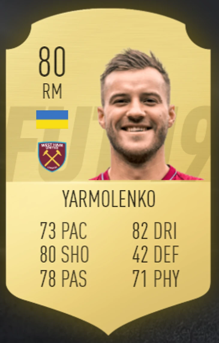 Полузащитник «Вест Хэма» Андрей Ярмоленко прокомментировал свои игровые показатели в FIFA 19.