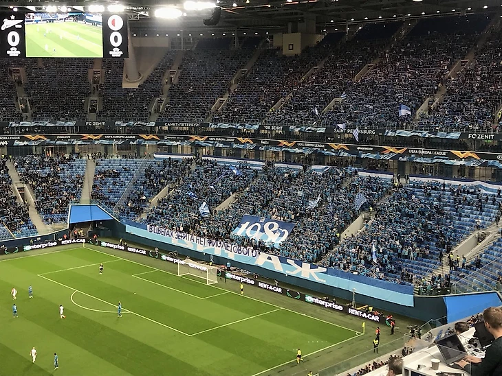 Во время матча 2-го тура группового этапа Лиги Европы со «Славией» на фан-секторе петербуржцев появился баннер: «В цветах «Зенита» нет фиолетового».