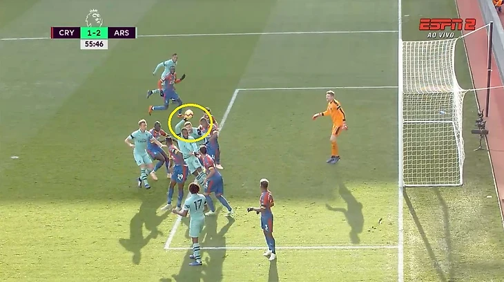 Ляказетт рукой сделал голевую передачу на Обамеянга в игре с «Кристал Пэлас»