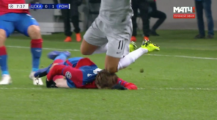 Фернандес не смог продолжить матч и покинул поле на носилках. Вместо него в игру вступил Георгий Щенников.