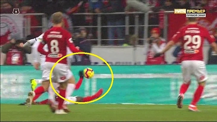 Арбитр не назначил пенальти в ворота «Спартака» за то, что Зе Луиш рукой прервал передачу