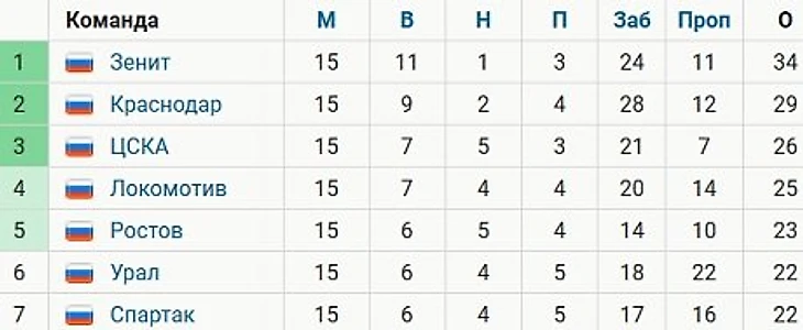 «Зенит» выиграл первый круг РПЛ. «Краснодар» отстает на 5 очков, «Спартак» – на 12