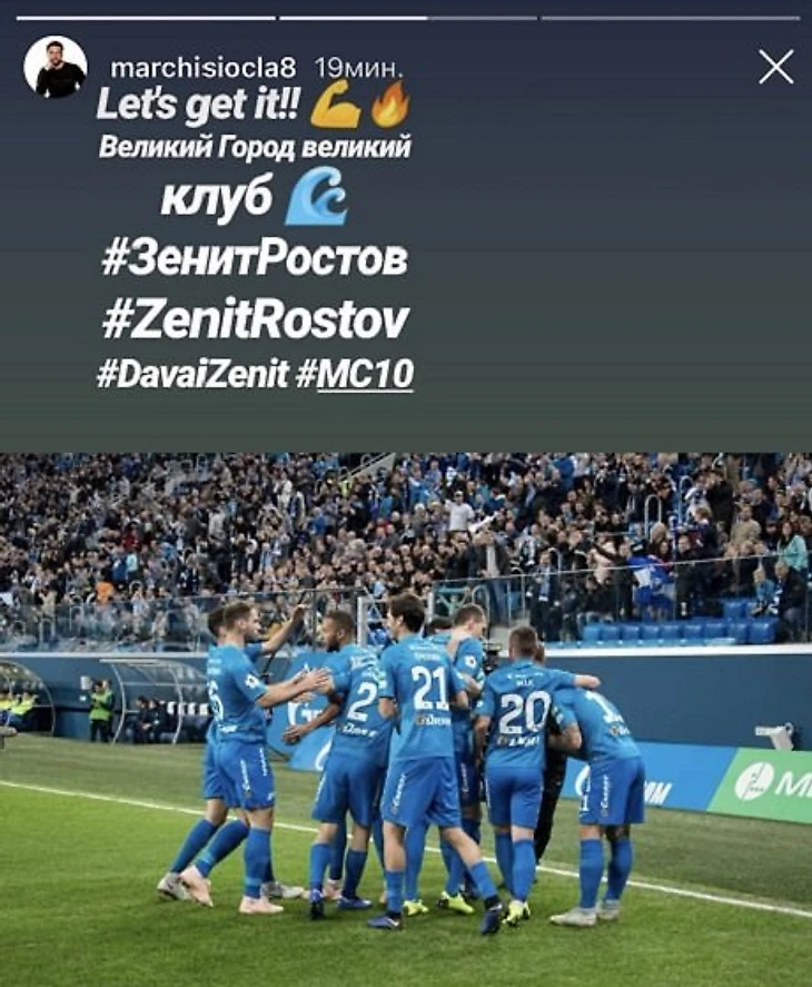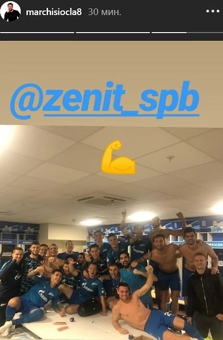 Полузащитник «Зенита» Клаудио Маркизио выставил командную фотографию после матча РПЛ с «Ростовом» (2:0).
