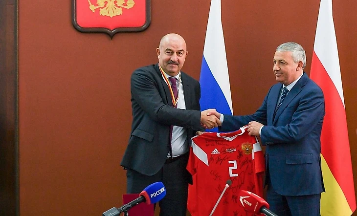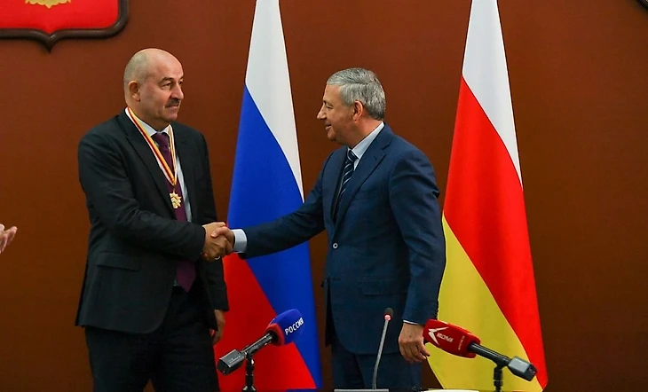 Глава Северной Осетии Вячеслав Битаров наградил главного тренера сборной России Станислава Черчесова орденом «Во славу Осетии».