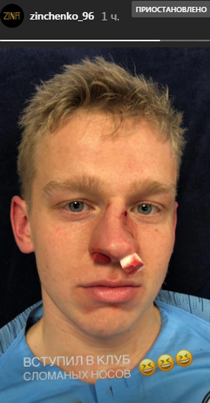«Вступил в клуб сломанных носов», – подписал фото в инстаграме Зинченко.