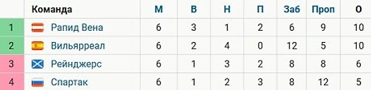 «Спартак» занял 4-е место в группе Лиги Европы, «Краснодар» вышел в плей-офф