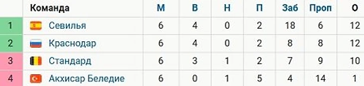 «Краснодар» крупно проиграл на выезде «Севилье» (0:3) и, набрав 12 очков, вышел в плей-офф из группы J со второго места.